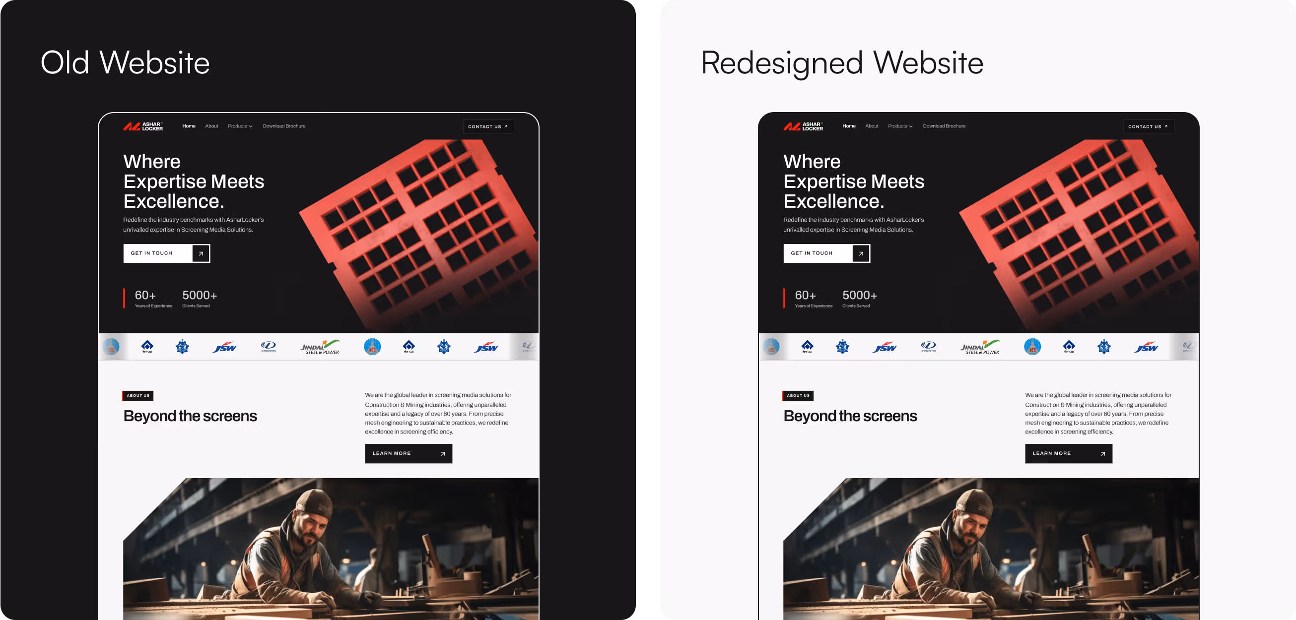 For Ashar Locker’s "About Us" page, we designed a narrative-driven layout that tells the company’s story in a compelling and engaging way. We highlighted their decades of expertise in the construction and mining industries, showcasing their journey from a local provider to a global leader in screening media solutions. The page features a blend of historical milestones, team highlights, and their commitment to innovation and sustainability. Visual elements like timelines, team photos, and testimonials bring a human touch to the page, while clear, bold messaging reinforces Ashar Locker’s dedication to quality and global impact. This design helps establish a strong connection with visitors, building trust and credibility.