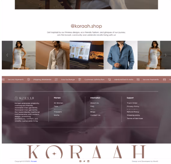 We designed and built a high-conversion Shopify storefront for Koraah, focusing on premium storytelling, mobile-first shopping, and a smooth path from discovery to purchase.